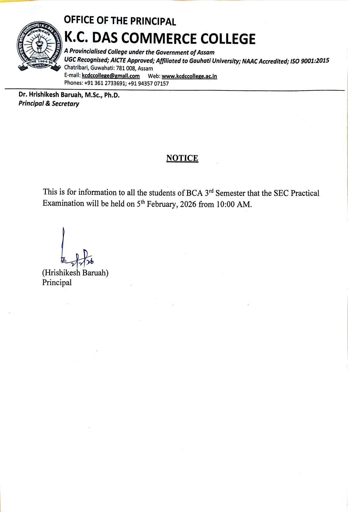 UGC Recognized | AICTE Approved | Gauhati University | NAAC Accredited | ISO 9001:2015